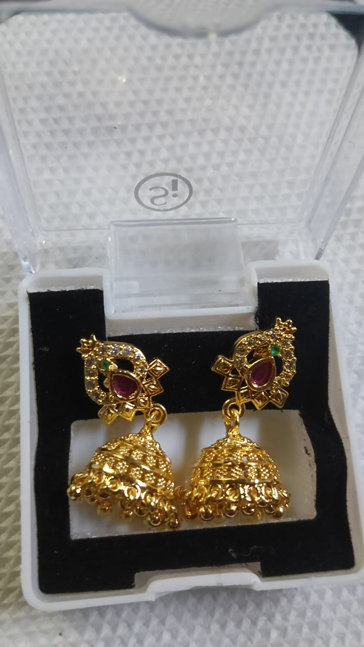 Lady Fancy Gold Ear Top Glossy Finish with Diamonds